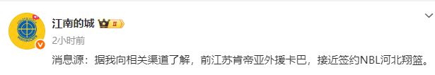 媒体人:前江苏男篮外援卡巴接近加盟NBL球队石家庄翔蓝